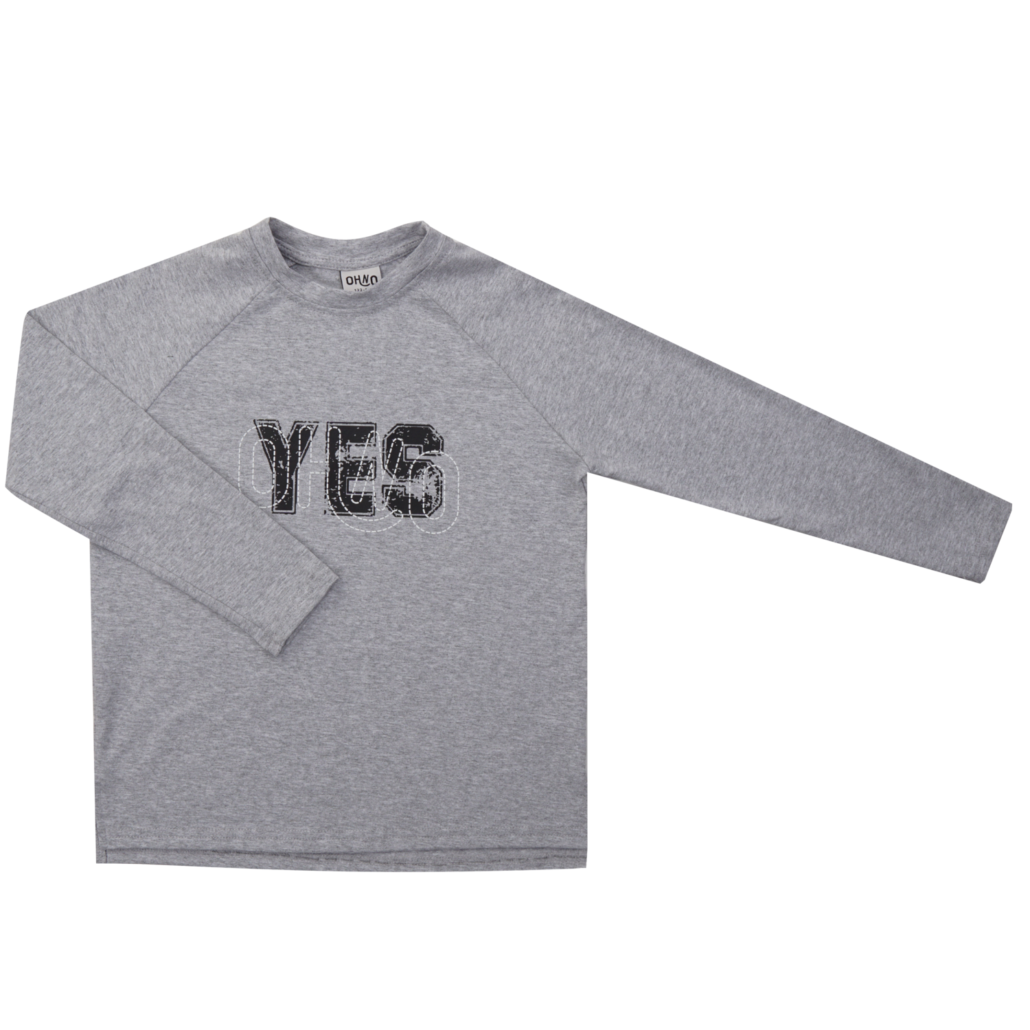 - Koszulka z długim rękawem w kolorze szarym. Nadruk z logo OH NO na przodzie z dodatkiem wersji O YES.
