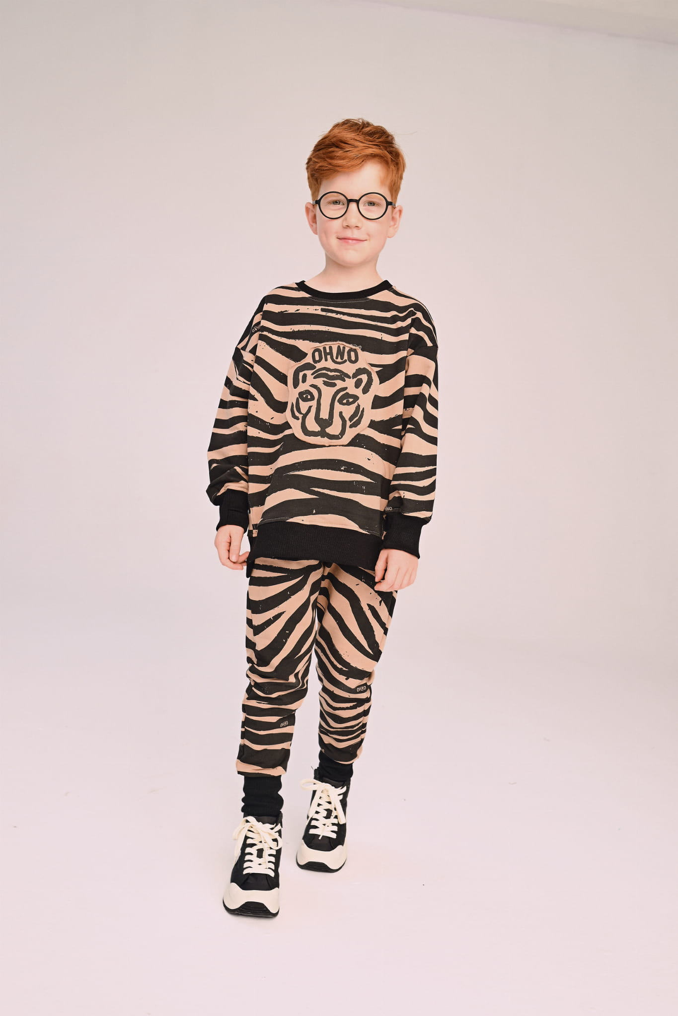 - Spodnie typu jogger z kieszeniami w autorski print ZEBRA CARAMEL.