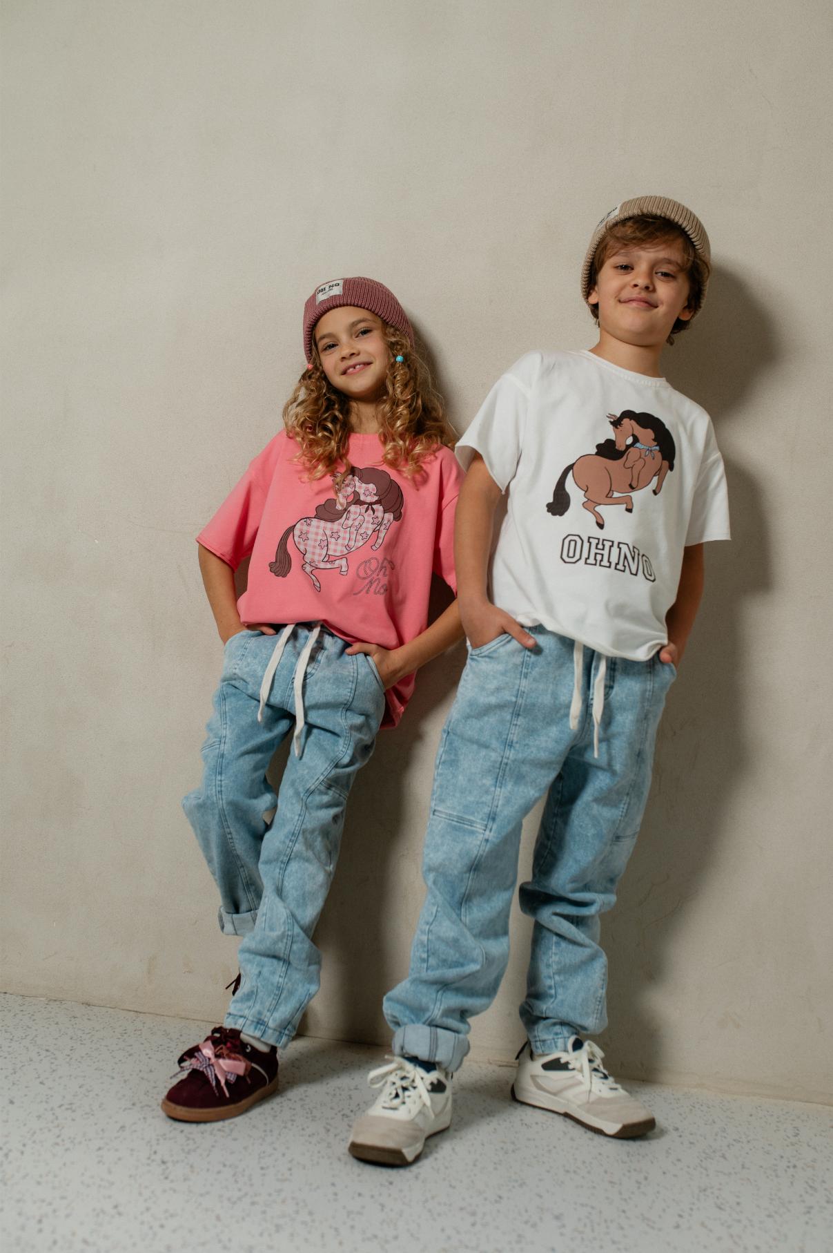 T-shirt OHNO w odcieniu Pink Peach z minimalistycznym konikiem to idealny wybór na co dzień. Miękka bawełna z dodatkiem elastanu daje komfort w ruchu, a pastelowy kolor dodaje lekkości każdej stylizacji.